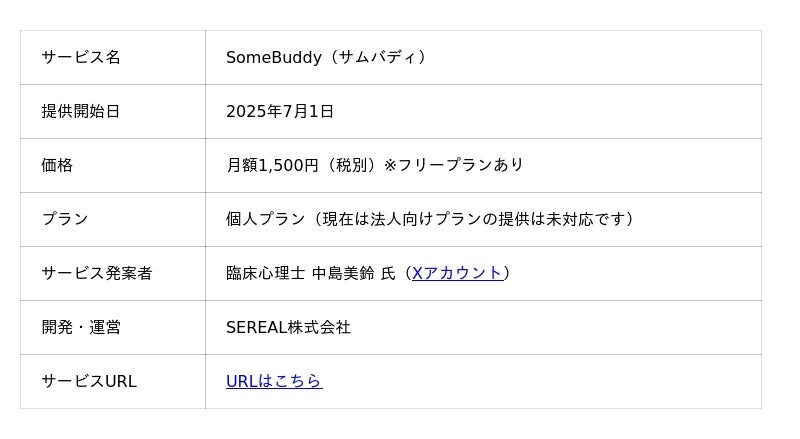 SEREAL株式会社(本社:福岡県福岡市、代表取締役:安達 誠寛)は、コラボレーション事業として臨床心理士の中島美鈴氏との共創で、ADHDなど先延ばし癖がある人の課題を克服する、オンライン見守りサービス「SomeBuddy」をAIを活用し開発・リリースしました。