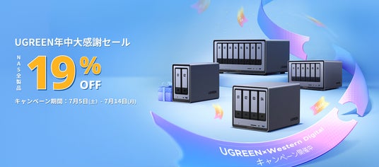 最先端の技術を採用して信頼性の高いPCやスマートフォン周辺機器などを開発・生産している株式会社ユーグリーン・ジャパン(本社:東京都千代田区)は、7月8日(月)~10日(水)開催の先行セールおよび、7月11日(木)~7月14日(日)開催のAmazonプライムデーの第一弾セール情報として、日本国内クラウドファンディングの最高支援額を更新した「UGREEN NASync DXPシリーズ」を、最大19%OFFの特別価格で販売することをお知らせいたします。また、UGREEN NAS公式サイト(https://nas.ugreen.jp/)においては、7月5日(土)~7月14日(月)に特別価格でセールを行うことも、併せてお知らせいたします。