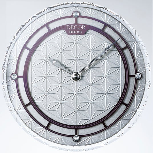 伝統的な吉祥文様の「麻の葉」柄を江戸切子であしらった文字板
