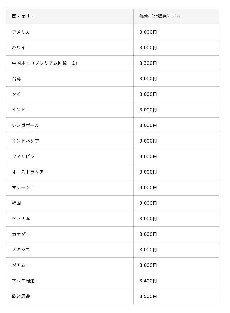 5G・無制限プラン 対応国・エリアと価格