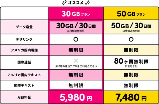 サクッとSIM US プラン表