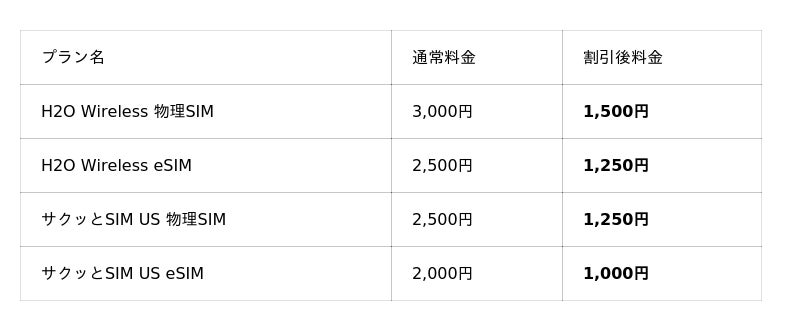 H2O Wireless / サクッとSIM USの初期費用(事務手数料)が通常の50%OFFになる特別割引を実施します!