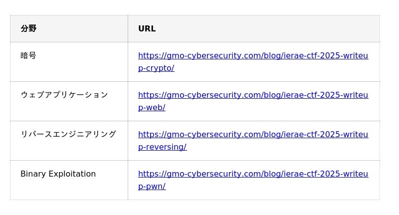 「IERAE CTF 2025」で出題された問題の解法は、GMOサイバーセキュリティ byイエラエの公式セキュリティブログで公開をしています。