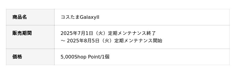 「コスたまGalaxyII」七夕にぴったりな星空をイメージしたラインナップ