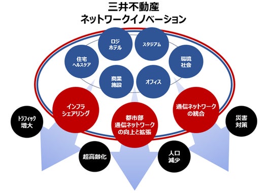 また三井不動産は、この通信ネットワークの向上を通じ、不動産事業のあらたな価値向上を生み出す「ネットワークイノベーション事業」に取り組むことで、今後、増大が予測される通信トラフィックへの対応や災害時の通信不良への対策のみならず、今後、日本が直面する人口減少や超高齢化等の社会課題に対して、豊かできめ細かな通信環境の実現から創造される魅力的なソリューションを提供していきます。