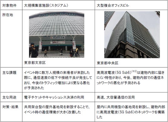 ※1:都市部建物の内外に通信基地局を設置し、通信キャリアにシェアリング形式で提供することで、建物内部や周辺エリアの通信ネットワークの向上を図る事業