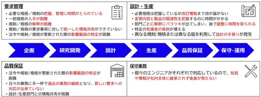 これらのリスクを回避するためにも、国際工業規格に関する最新情報を、社内全体で共有・確認できる仕組みが求められています。しかし、多くの企業では、規格文書を紙媒体やPDF形式で個別に保管しており、規格/規制の共有・検索や管理や更新情報の把握の難しさなど、さまざまな課題が指摘されています。