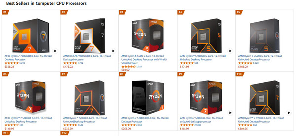 ゲームに、動画編集に、AIワークロードまで──高性能CPUとGPUを武器に、今やインテルに真っ向勝負を挑む存在となったAMD。2024年後半から、秋葉原のPCショップでは「AMD Ryzen™ 9000」シリーズや「AMD Radeon™ RX 9000」シリーズの人気がさらに加速。とくに自作PCユーザーからは「コスパの高さ」と「安定した進化」が高く評価されている。その人気はすさまじく、米国のAmazonベストセラーランキング(CPUの売れ筋ランキング)のTOP10をAMD Ryzen™シリーズが独占した。日本のCPUの売れ筋ランキングでもTOP10のうち9製品がAMD Ryzen™シリーズとなっている(それぞれ2025年6月30日現在)。