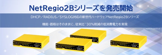 DHCP/RADIUS/SYSLOG対応のNetRegio2Bシリーズを発売開始。機能・価格はそのままに、従来比30%削減の低消費電力を実現