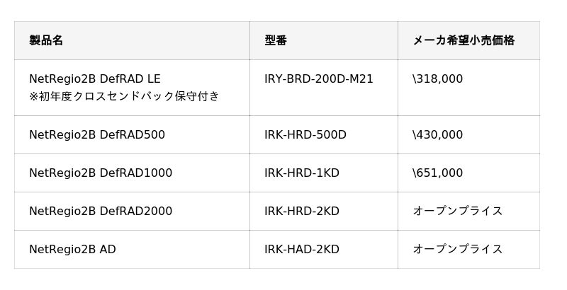 Made in Japanの高品質、拠点間冗長をはじめとする独自開発の高機能でご好評をいただいておりますDHCP/RADIUS/SYSLOG専用アプライアンスサーバのNetRegio2Aシリーズが、機能と価格はそのままに、新ハードウェア化にて10.0Wから7.0Wへ更なる省電力を実現したNetRegio2Bシリーズとしてリニューアルしました。