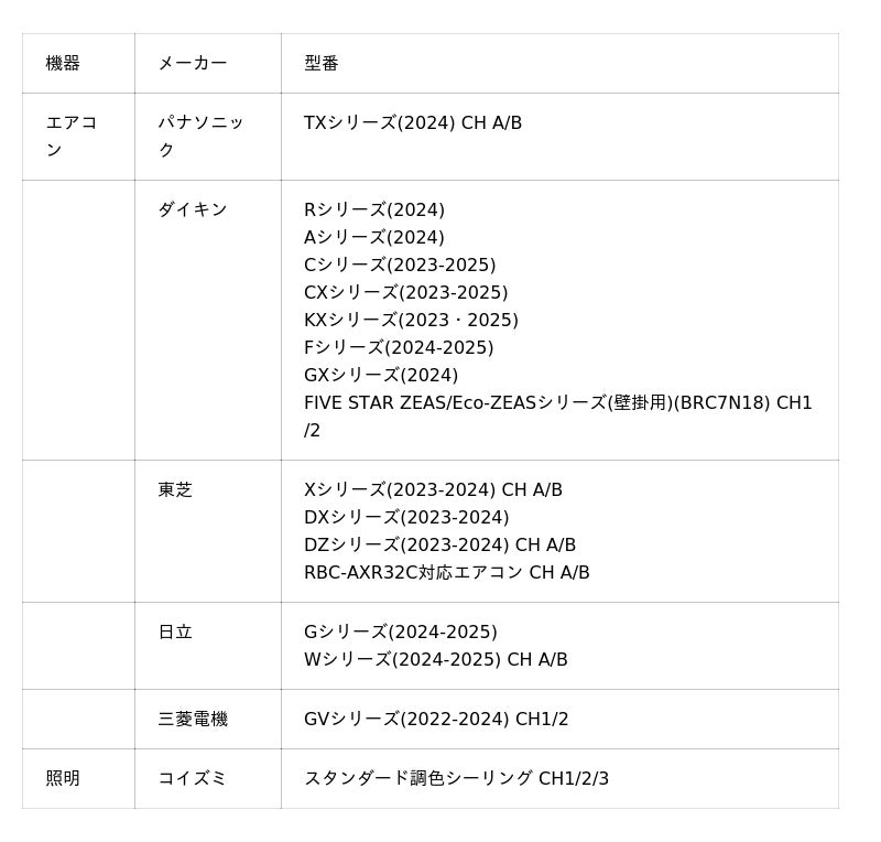 今回のアップデートでは、エアコン、照明の対応機種が追加されました。スマート家電リモコンの対応機器は、今後も随時増えてまいります。