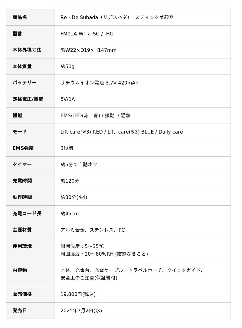これからも Re・De は、“テクノロジー×デザイン×ウェルネス” を軸に、生活者の期待を一歩先ゆく提案を続けてまいります。ぜひ「Re・De Suhada(リデスハダ) スティック美顔器」で、纏うケアの心地よさをご体験ください。