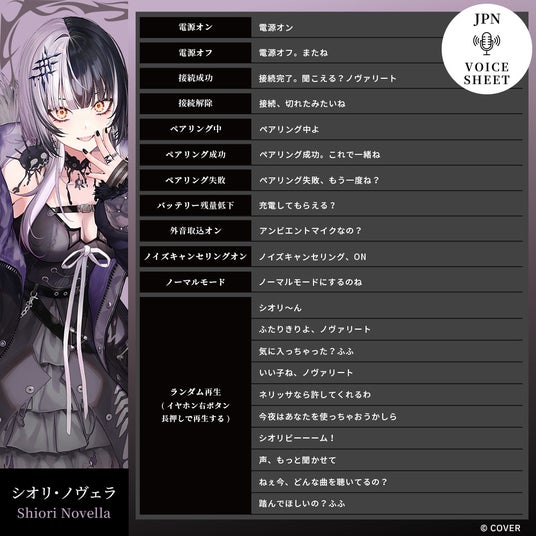 各タレントごとのモードと、シオリ・ノヴェラ&古石ビジュー&ネリッサ・レイヴンクロフトとFUWAMOCOの掛け合いモードを、それぞれ「日本語/English」で搭載。14モード、計370種以上の完全新録ボイスをお楽しみ頂けます。