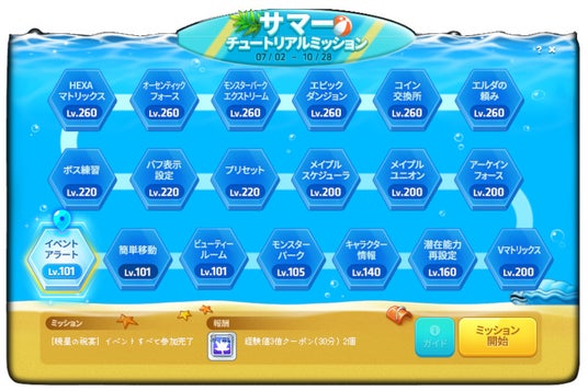 サマーチュートリアルミッションの詳細は、下記のお知らせをご覧ください。