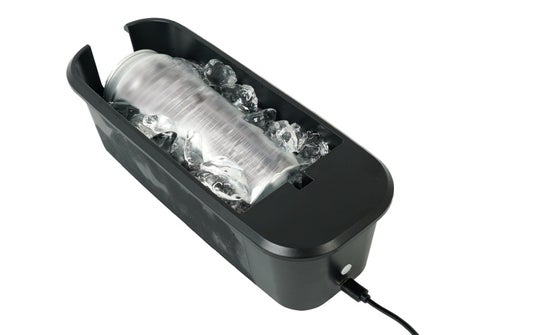 冷やしたい飲み物に付属の吸盤を装着し、本体にセットして氷を入れたらスイッチを押すだけ。