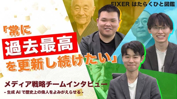 本記事はFIXERが提供する「cloud.config Tech Blog」に掲載された「【FIXERはたらくひと図鑑】『常に過去最高を更新し続けたい』 メディア戦略チームインタビュー -生成AIで歴史上の偉人をよみがえらせる-」を再編集したものです。