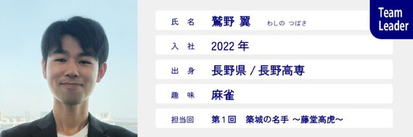 チーム発足から全体リーダーとしてみんなをまとめてくれています。将来こうなっていこう!というチームの目標を明確にし、中心的な存在でいつも頼りにしています!