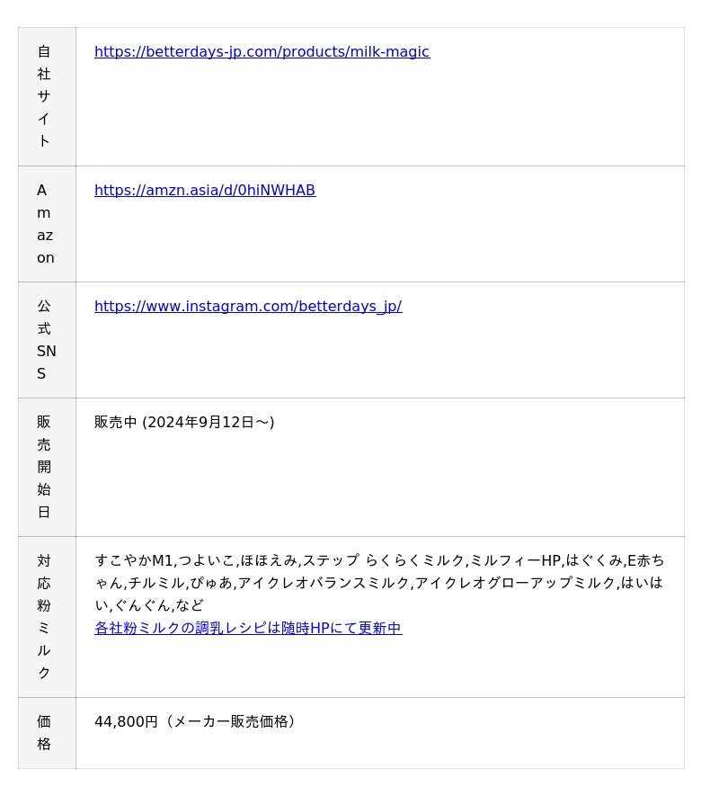 本サブスクリプションサービスは、雪印ビーンスターク株式会社の製品提供により実現しました。「milkmagic(ミルクマジック)」本体と、雪印ビーンスターク株式会社の乳児用調製粉乳「ビーンスターク すこやかM1」をセットでご利用頂く事で、割引価格で両製品をご利用頂ける月額課金形式のサービスとなっています。