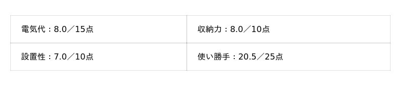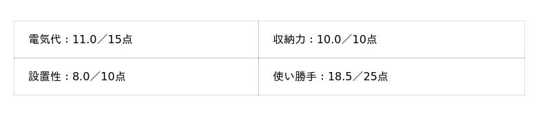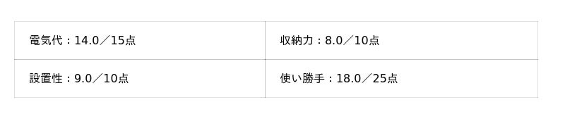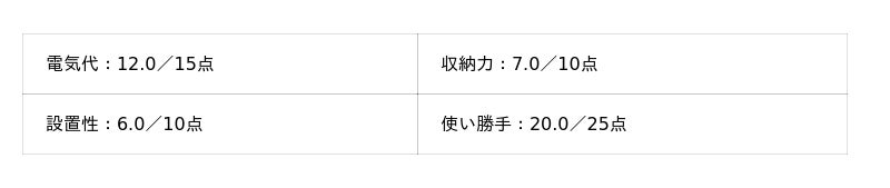 - 電気代:15点満点