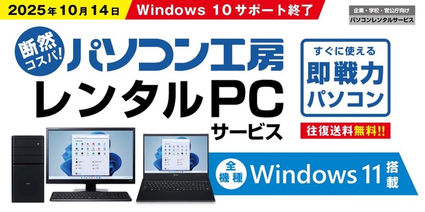 ユニットコムのレンタルPCサービスは、全機種Windows 11を搭載。Windows 10のサポート終了後のセキュリティリスクを最小限に抑え、Windows 11の最新機能とセキュリティ更新を提供する。特に短期間利用や一時的な代替機としての利用、Windows 11導入前のアプリケーション検証など、多様なニーズに応えるとしている。