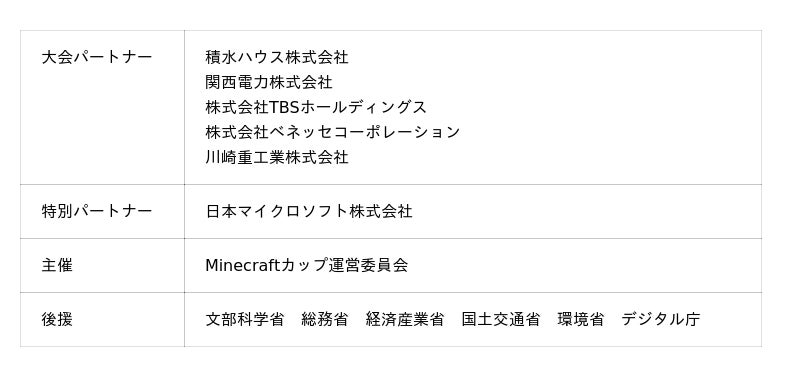 Minecraftカップでは、次年度大会以降の自治体パートナーを募集しています。ご興味をお持ちいただける自治体様は、以下のURLから公式サイト「パートナーシップ」ページをご覧ください。