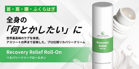Recovery Relief Rollーonは首筋・肩・腰・手足にグイグイ塗れるロールオンタイプのプロ仕様マッサージクリームです。サラッと乾くテクスチャーで外出先でも使いやすく、肩や腰などの広範囲はもちろん、有毛部位など塗りにくい箇所にも使いやすい液剤です。