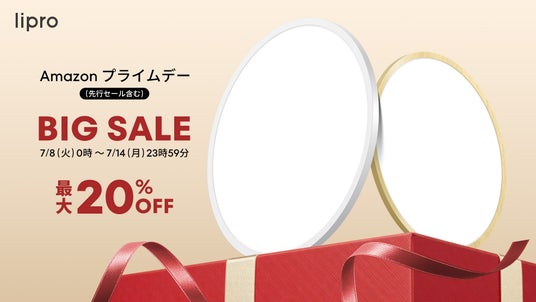 現在、「lipro 目に優しい シーリングライト」はAmazon.jpにて独占販売中です。さらにこの度、Amazonプライム会員限定のビッグセール「プライムデー」および「先行セール」への初参加を記念し、期間限定の特別価格でご提供いたします。先行セール<7月8日(火)0時~7月10日(木)23:59>と、Amazon プライムデー<7月11日(金)0時~7月14日(月)23:59>の両方の期間を通じて、最大20%OFFでご購入いただけます。期間限定のお得な価格でお買い物ができるチャンスですので、是非ともご注目ください。