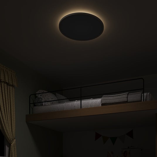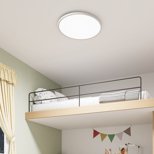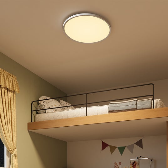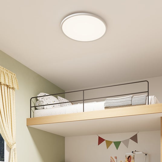 健康的な光環境だけでなく、空間美とも調和するデザインを追求。本体の最薄部はわずか1.7cmの超薄型構造のため設置後は天井とほぼフラットになり、一般的なシーリングライトよりも天井への圧迫感を軽減するため、部屋全体をすっきりと広く見せます。天井のスペースを占有しないスタイリッシュなデザインは、家のどんなインテリアにもぴったり適応し、寝室、子ども部屋、リビングなど、さまざまな家庭空間にフィットします。