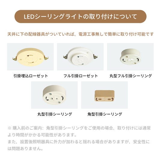 日本の一般的な引掛シーリングに対応可能です。工具不要で、たった5分、2ステップで1人でも簡単に取り付けることができます。落下防止の安全構造を採用し、過酷な環境テスト・耐震テストもクリアしているため、安心してお使いいただけます。また、取り外しや再設置も簡単で、引っ越し先でも引き続きお使いいただける製品になっております。
