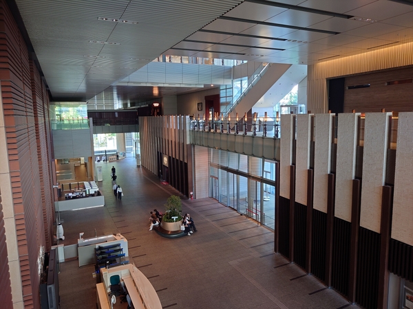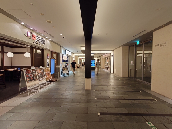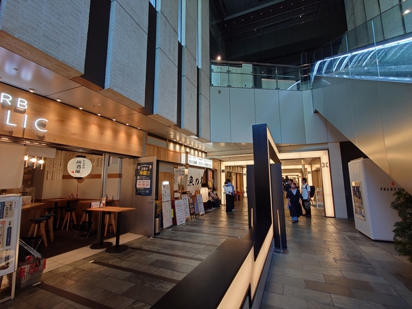 グルメでは、「お好み焼 きじ」「つるとんたん」「THE ROAST KOBE MEAT HOUSE」「VIRON」等、関西系・欧州系など多彩なジャンルの名店が軒を連ねています。また、音楽と食の融合を楽しめるエンターテインメントレストラン「COTTON CLUB」や、女性専用クリニック「イーク丸の内」、チャイルドケアセンター「キッズスクウェア」など、ライフスタイルを支えるサービス機能も備え、働く人々の“夜と日常”を豊かに支える複合商業ゾーンとなっています。ちなみに地下1階部分は、北側でJPタワーの商業施設「KITTE」と接続し、南側ではJR京葉線「東京」駅の改札口や東京国際フォーラム方面へとつながっています。このように、東京駅を中心とした地下歩行者ネットワーク、いわゆる「丸の内ダンジョン」の一部を形成しており、商業ゾーンは常に多くの人で賑わいを見せています。また、南側には地下と地上を結ぶ吹き抜け「地下プラザ」があり、地上と地下の都市空間を接続する役割も担っています。