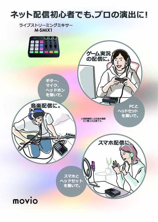 ナガオカは、アウトドアデジタル製品を扱う「movio」ブランドから、PC、スマホ、楽器配信のサウンドコントロールをサポートするライブストリーミングミキサー「M-SMIX1」を全国の家電量販店・ECサイトにて、2025年 7月 4日より発売いたします。