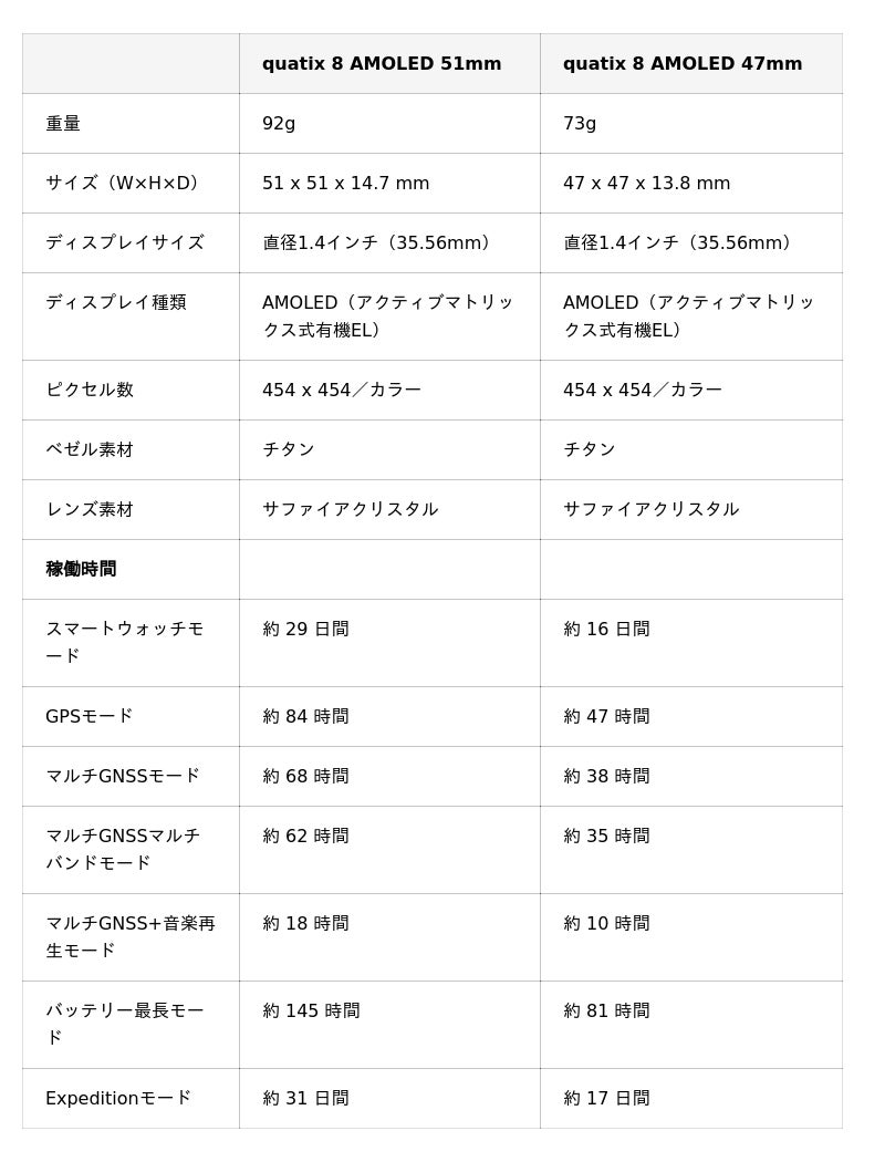 『quatix 8 AMOLED 47mm』『quatix 8 AMOLED 51mm』