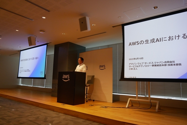 「今年、2025年は生成AIによる、ビジネス価値の創出。これにお客様の注目、注力が移りつつあるのかなと思っております」という、AWSのサービス&テクノロジー事業総括本部技術本部長の小林正人さんの言葉から説明会は始まりました。