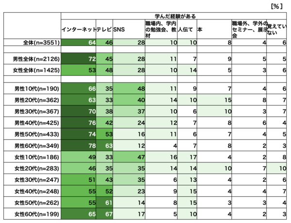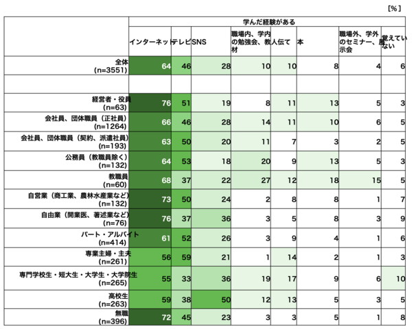 「インターネット」「テレビ」「SNS」で学んでいる