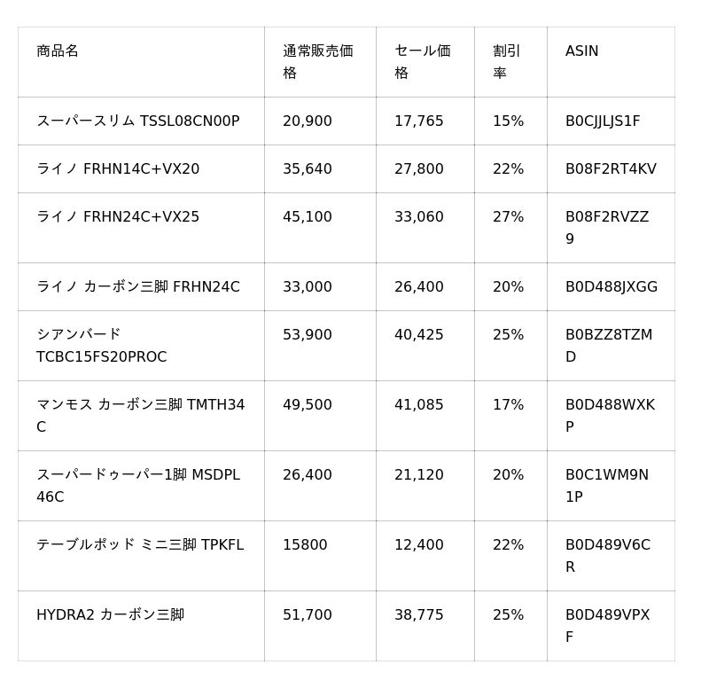 BENRO プライムデー対象商品(2025年7月8日(火)0:00~7月14日(月)23:59)
