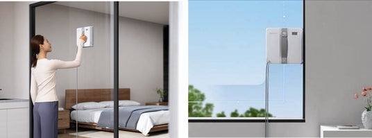 - 大容量バッテリーを備えたコンセント要らずの窓ふきロボット掃除機。
