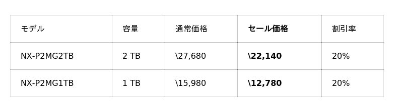 NX-P2MGシリーズ製品ページ:https://www.nextorage.net/ssds/p2mg/