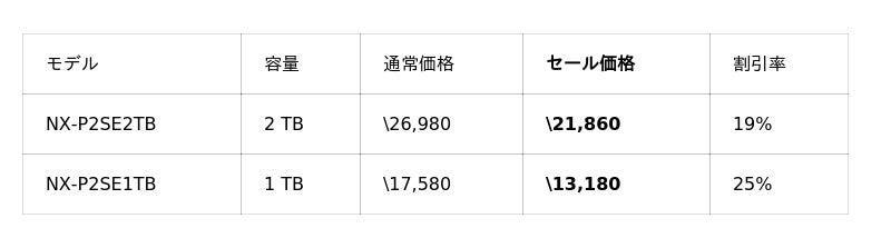 NX-P2SEシリーズ製品ページ:https://www.nextorage.net/ssds/p2se/