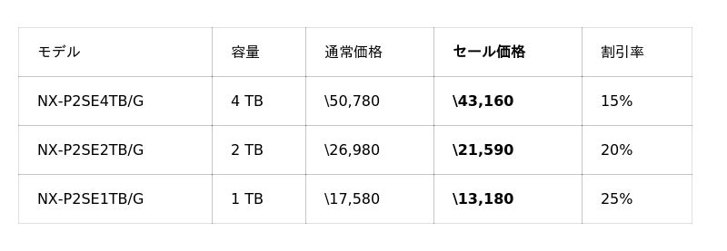 また、最新世代のGen5 SSDには、セール対象外製品がありますが、セール対象外製品は、セール期間中ポイントを30~35%付与いたします。この機会にぜひ、お買い求めください。