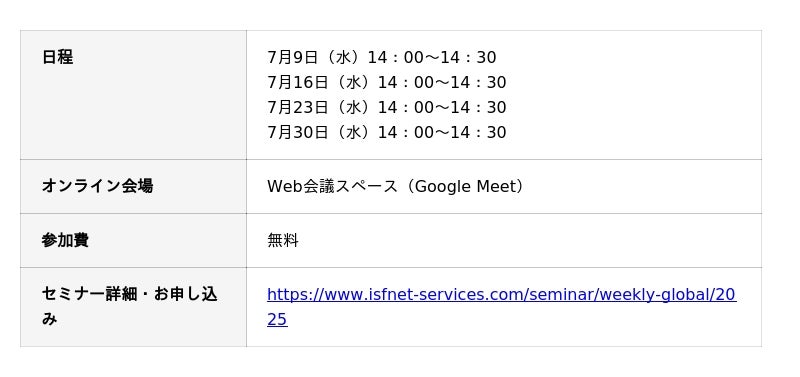 セミナーお申し込みはこちら:https://www.isfnet-services.com/seminar/weekly-global/2025