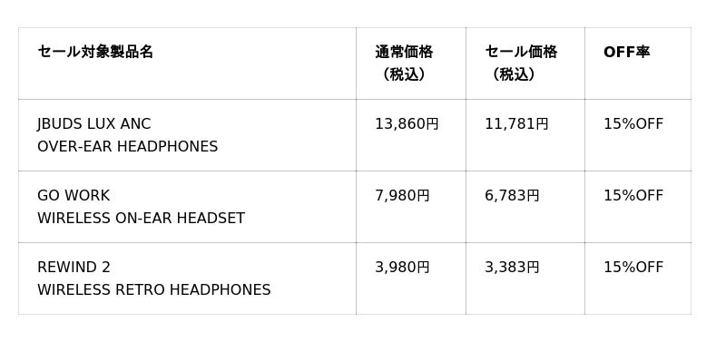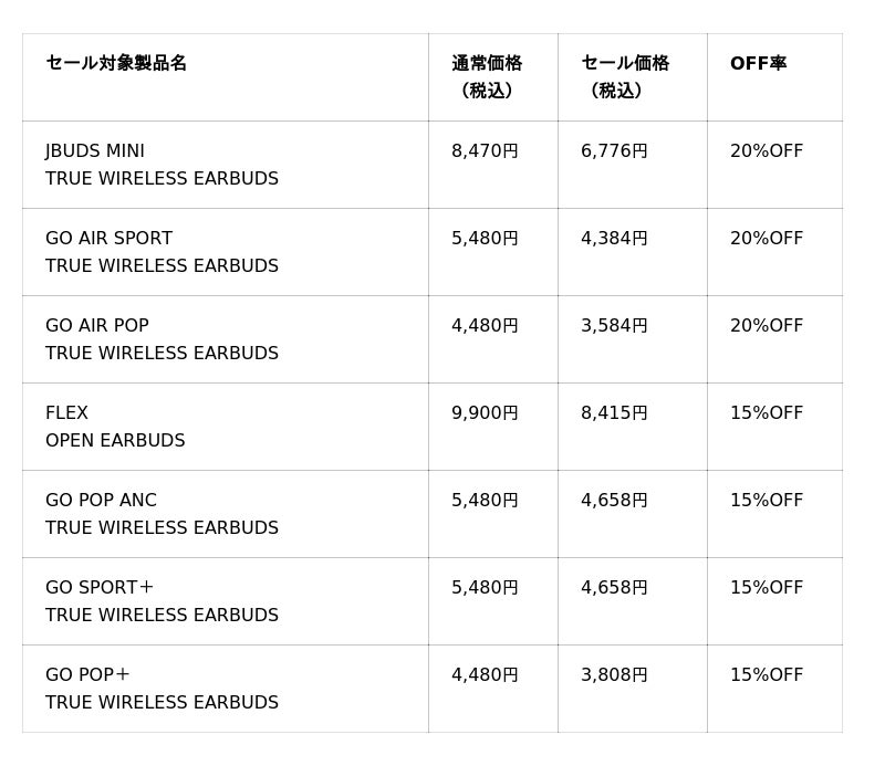 今回は人気の16製品を特別価格で販売。スポーツやキャンプなど、これからのアクティブシーンにぴったりな、防水・防滴性能に優れた人気のスポーツイヤホン、極小イヤホン、キッズヘッドホンなど、バラエティーに富んだ製品をラインナップ。2025年新発売の、耳をふさがないイヤーカフイヤホン「Flex Open Earbuds」や、人気レトロヘッドホン「Rewind2」、3色のスケルトンカラーが魅力の「Go Pop ANC」などが今回のプライムデーでは、それぞれ15%OFFの特別価格にてご購入いただけます。