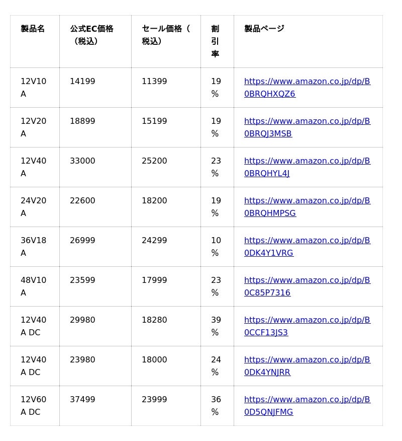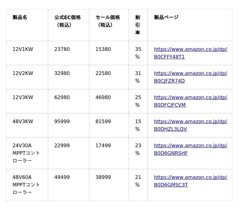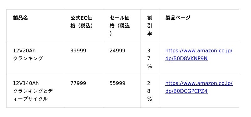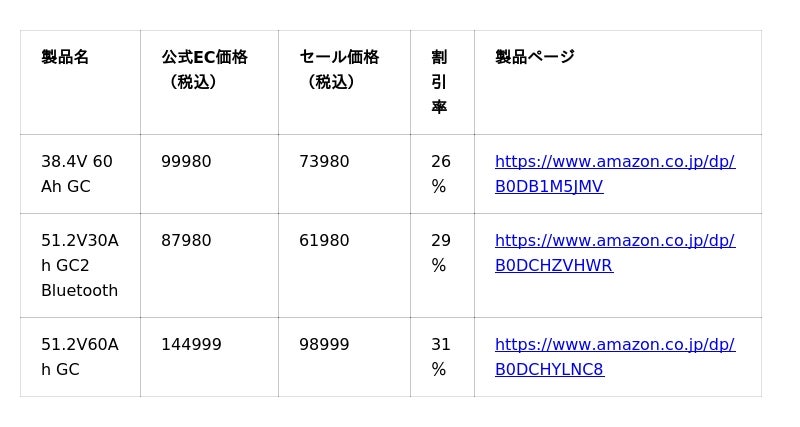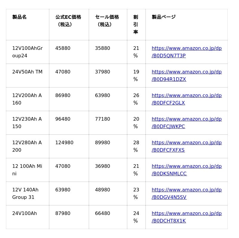 人気LFPバッテリーの参考価格はこちら: