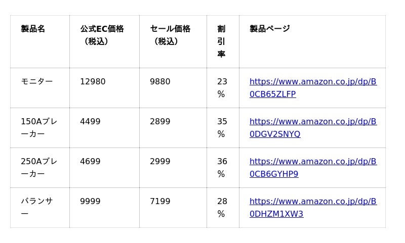 ※セール内容や価格は予告無く変更または終了する場合がございますので、予めご了承ください。