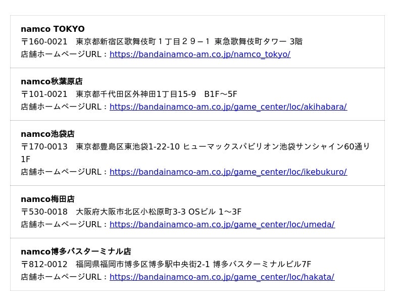 【namco TOKYO公式X(旧Twitter)】: