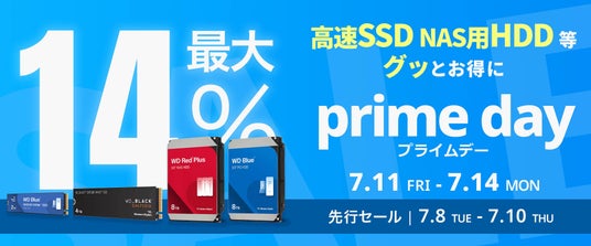 2025年7月11日(金)0:00から7月14日(月)23:59にわたってAmazonで開催される「プライムデー」と、7月8日(火)から開催される「プライムデー先行セール」において、WesternDigitalとSandiskの人気製品が最大14%OFFとなる特別セールを実施します。