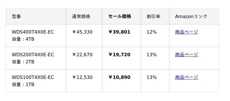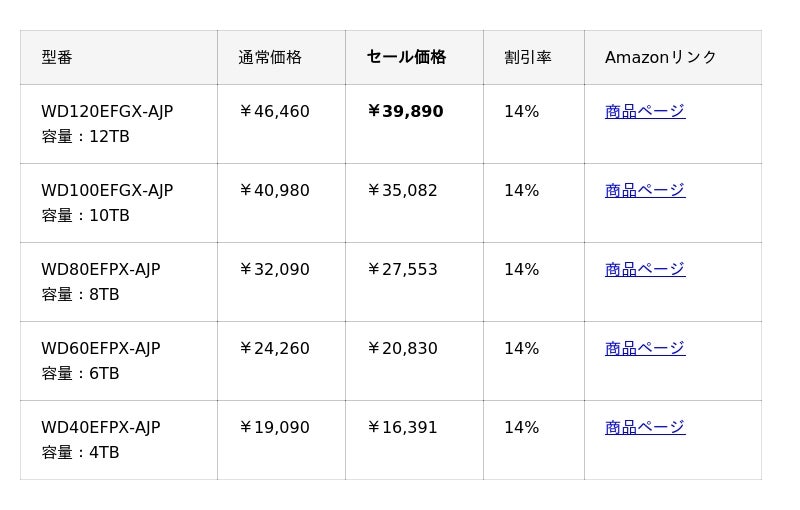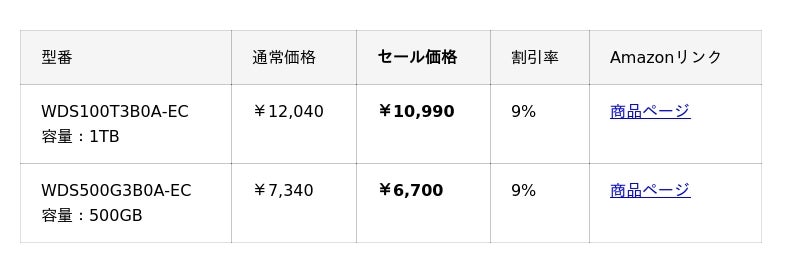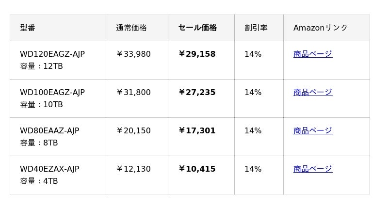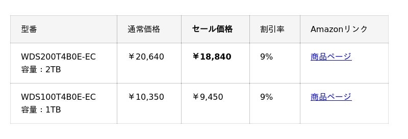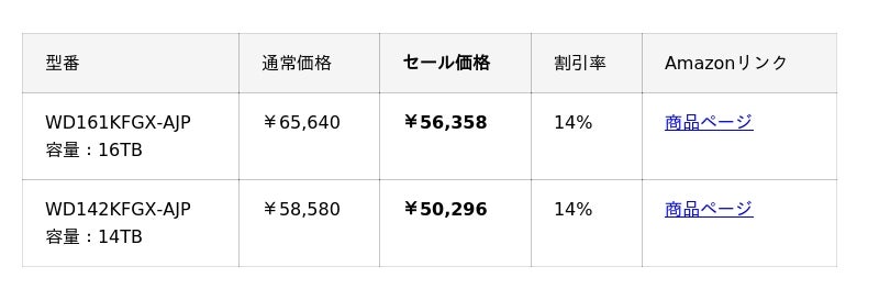 NAS向けの高耐久HDDや、ゲーミング向けの高速M.2 SSDなど19製品が大変お得になるセールとなっています。