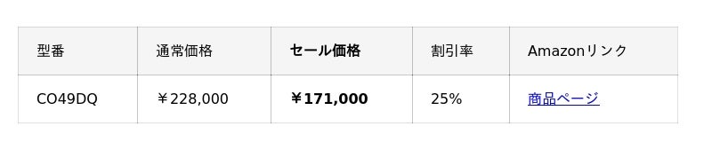 曲面 有機EL(OLED)ゲーミングモニターなど6製品が大変お得になるセールとなっています。