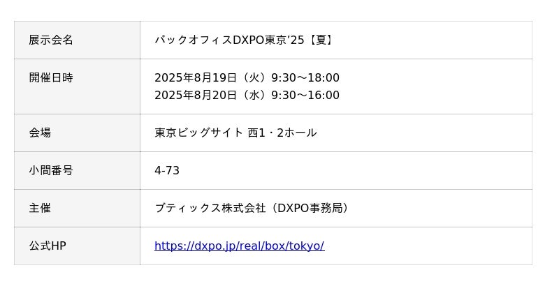 株式会社BetaMind(本社:東京都渋谷区、代表取締役:吉田健人、以下BetaMind)は、2025年8月19日(火)~20日(水)に東京ビッグサイトで開催される「バックオフィスDXPO東京’25【夏】」へ出展することをお知らせいたします。