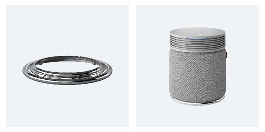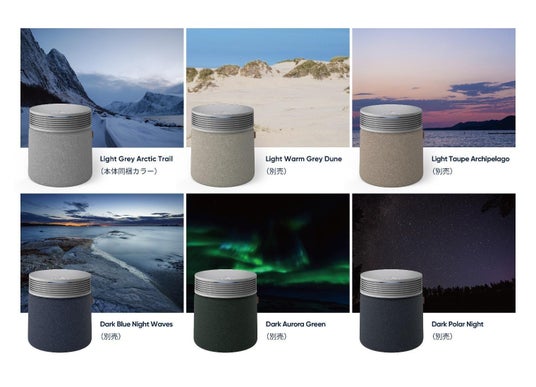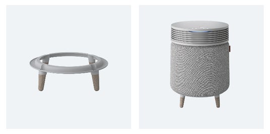 サイドテーブルとしても使えるデザインで、家具と自然に調和します。本体カラーはライトグレーで、多様なプレフィルターやインテリアにマッチします。別売りのプレフィルターはスウェーデンの自然にインスパイアされた6色から選べるので、部屋に合わせてカスタマイズ可能。