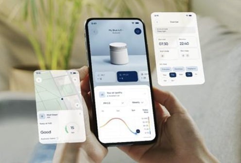 そのほか、直感的な操作を可能にするディスプレイやアプリも備えています。5色のステータスランプや、数値の表示で目に見えない空気の状態をわかりやすくお知らせします。「Blueair アプリ*⁵」ではさらに細かく空気質のモニタリングや、遠隔操作が可能です。